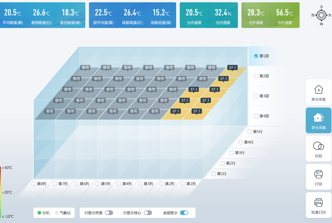 (1) 糧情采集:糧情的定時采集與實時采集功能,支持倉房的單倉與多倉采集。節(jié)省糧情實時采集的時間,是用戶操作更便利。